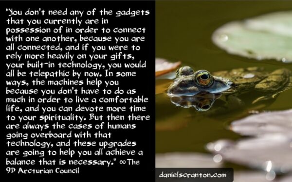 You don’t need a time machine or a teleportation device. You don’t need a med bed. You don’t need any of the gadgets that you currently are in possession of in order to connect with one another, because you are all connected, and if you were to rely more heavily on your gifts, your built-in technology, you would all be telepathic by now. In some ways, the machines help you because you don’t have to do as much in order to live a comfortable life, and you can devote more time to your spirituality. But then there are always the cases of humans going overboard with that technology, and these upgrades are going to help you all achieve a balance that is necessary in order for you to get back to the biggest journey that you have, and that is the journey within.